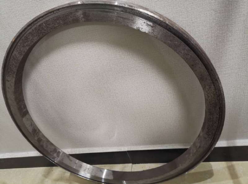 雙密封法蘭坡口加工采用機(jī)械方法進(jìn)行加工,因密封法蘭上焊接坡口已機(jī)加工成型,操作人員將坡口表面及周邊10mm左右焊件上的油漆、銹、垢等雜物清除干凈,焊件坡口打磨露出金屬光澤。