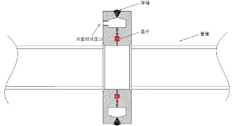 施工準(zhǔn)備 → 材料驗(yàn)收 → 坡口打磨 → 安裝墊片 → 配對(duì)雙密封法蘭組對(duì) → 雙密封法蘭加緊 → 打底焊接 → 雙密封預(yù)試壓 → 焊縫填充、蓋面 → 焊縫外觀檢查 → 焊縫無(wú)損檢測(cè) → 雙密封水壓試驗(yàn) →排水、干燥 → 法蘭試壓口封堵 → 管道系統(tǒng)水壓試驗(yàn) → 排水、干燥