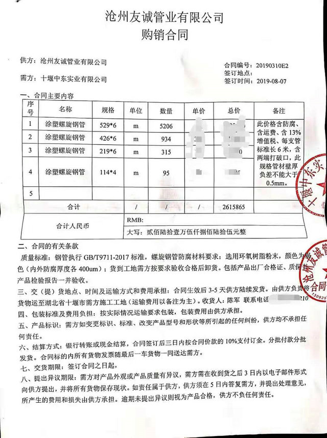 湖北十堰中東實業(yè)有限公司與我公司簽訂的管廊工程用內(nèi)外涂塑復(fù)合鋼管合同,我公司確保質(zhì)量為原則,保障工期為根本,贏得了客戶的好評,通過我們不斷的努力十堰管廊工程我們又合作的另外兩個標段